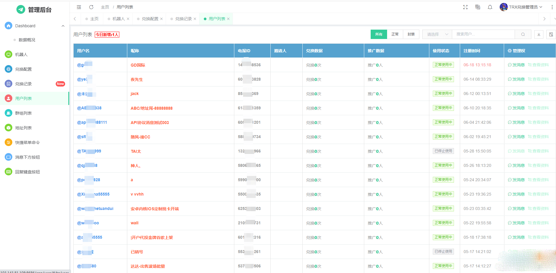 支持后台可视化自定义消息下发按钮 菜单命令 用户管理 群管理 推广返利等等