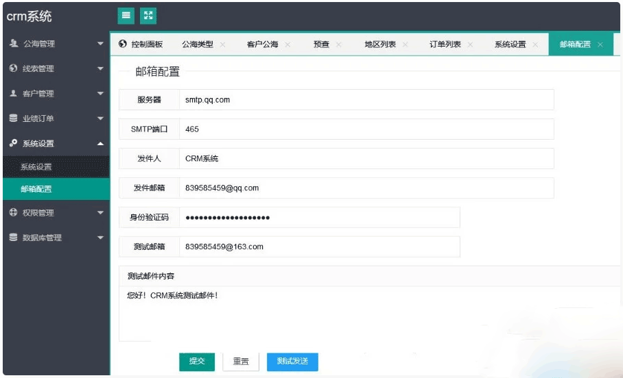 5、 系统设置:系统设置、邮箱配置。